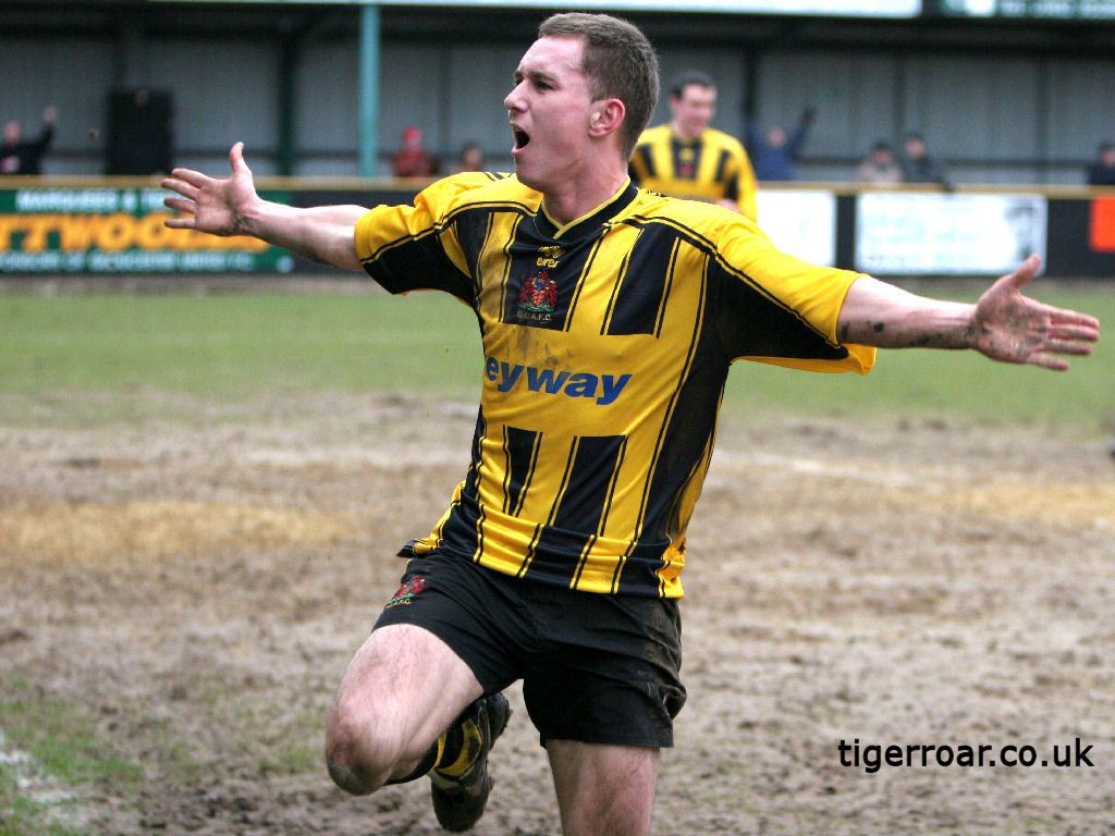 Dave Wilkinson wheels away in celebration after scoring at Aylesbury. |