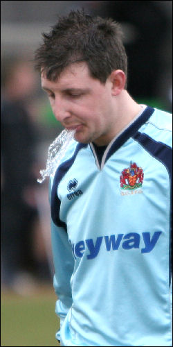 | Matt missed the first three games of the 2002/03 season after he was red carded at Atherstone. After he'd served his suspension he seemed to take a while to find his best form. He conceded more than twenty goals in his fist dozen games but found his form in the away win at Sutton Coldfield. Whilst the home keeper reacted to anything the Taff said to him, Matt quietly pulled off several breathtaking saves and announced his return to top form. |